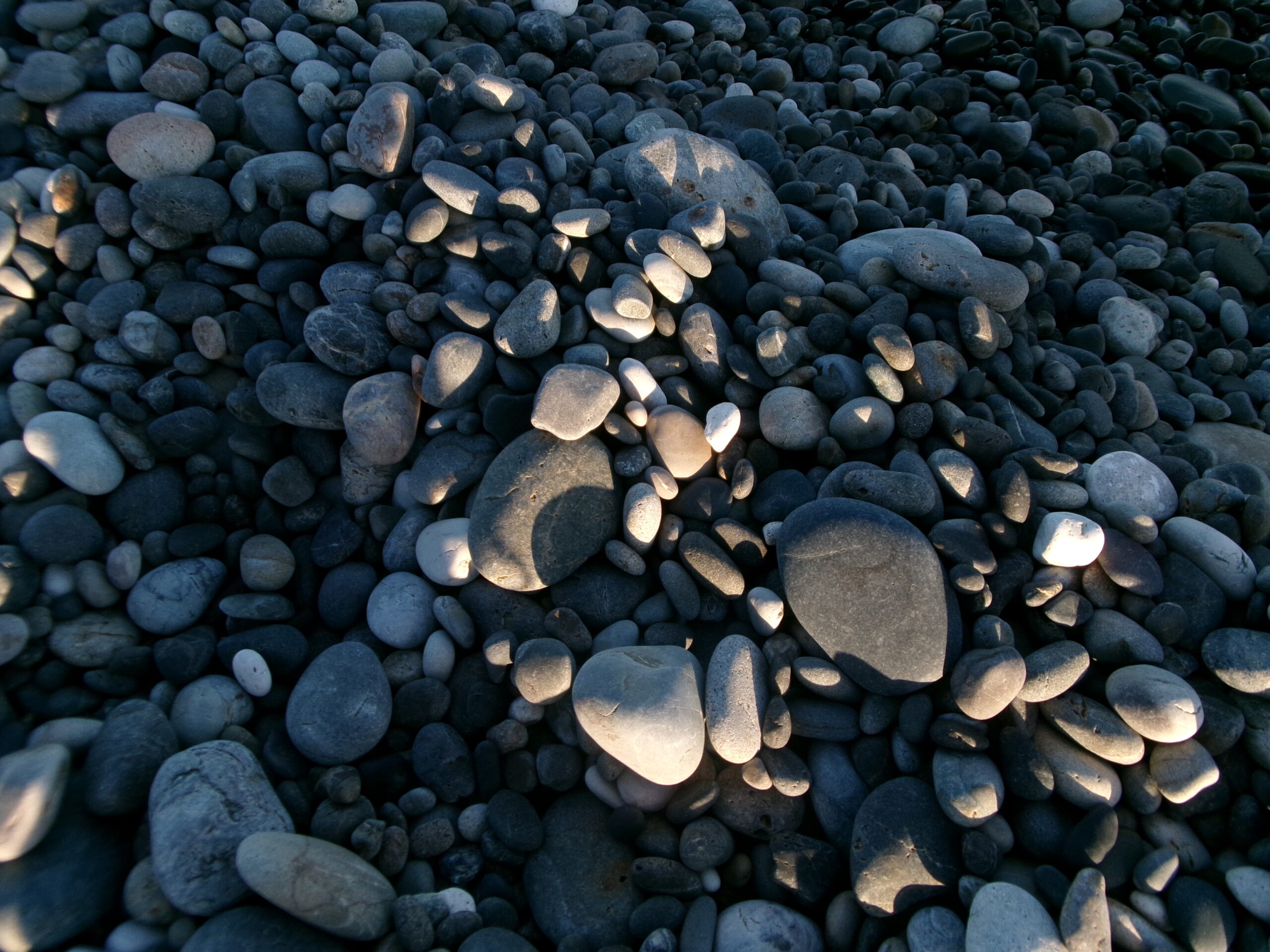 七里御浜の釣り場の写真。玉石の様子を写した写真